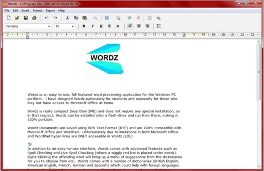 Because Wordz uses Rich Text (RTF) as its document format, there is full compatibility to and from Microsoft Office.